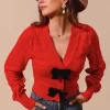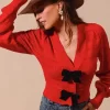 Contrast Bow Front Sweater Cardigan – Red/Black