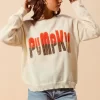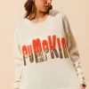 Contrast Sequin Pumpkin Slogan Sweater Top – Oatmeal