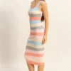 Contrast Striped Scoop Neck Wide Strap Knit Dress – Multicolor