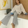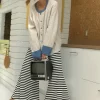 Contrast Trim Button Down Raglan Sleeve Cardigan – Oatmeal/Denim Blue
