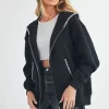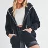 Contrast Trim Zip Up Hoodie Jacket – Black