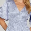 Crinkle Woven V-Neck Balloon Sleeve Mini Dress – Light Blue