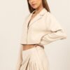The cropped button-down blazer is a stylish and versatile piece that adds a polished touch to any outfit. This blazer features a trendy cropped length, making it perfect for layering over dresses or tops. The button-down front adds a sophisticated element, while the structured silhouette creates a chic and tailored look. Pair this blazer with high-waisted pants or a skirt for a fashion-forward and put-together ensemble.