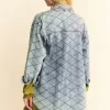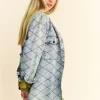 Curved Hem Diamond Quilted Button Up Denim Shacket – Light Blue
