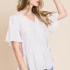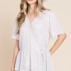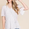 Ditsy Print V-Neck Short Sleeve Wrap Blouse – Ivory/Lavender