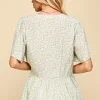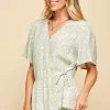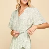 Ditsy Print V-Neck Short Sleeve Wrap Blouse – Sage/Ginger