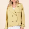 Double Breasted Long Sleeve Trench Coat Jacket – Yellow