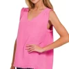Double Gauze Raw Edge V-Neck Tank – Lt Fuchsia