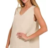 Double Gauze Raw Edge V-Neck Tank – Sand Beige
