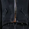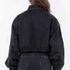 Drawstring Waist Crop Denim Jacket – Black