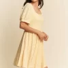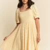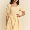 Eyelet Baby Doll Romantic Square Neck Dress – Baby Yellow