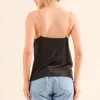 Faux Pearl Gold Chain Satin Casual Cami Top – Black