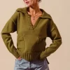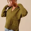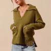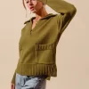Flap Collar Sweater Pullover Top with Patch Pocket – Lt Olive