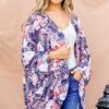 Floral Print Dolman Sleeve Kimono Cardigan – Navy
