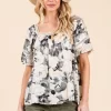 Floral Print Lace Trim Puff Sleeve Blouse – Black Combo