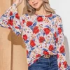 Floral Printed Bell Sleeve Casual Top – Beige Red