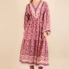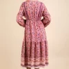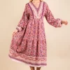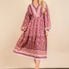 Floral Printed Boho V-Neck Balloon Sleeve Dress – Purple Mix