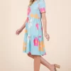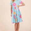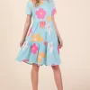 Floral Round Neck Short Sleeve Tiered Dress – Pastel Blue