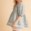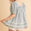 The floral short sleeve babydoll top is a charming and feminine addition to your wardrobe. The floral print adds a touch of romance and whimsy to the top. The babydoll silhouette creates a flirty and flattering look that is perfect for various occasions. The short sleeves are ideal for staying cool in warmer weather. Pair this top with jeans or shorts for a relaxed and effortless outfit, or dress it up with a skirt and heels for a more polished ensemble.