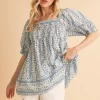 Floral Print Short Sleeve Off-The-Shoulder Blouse – Mint Combo