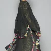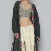 Floral Trim Lace Open Front Longline Cardigan – Black