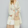 Floral Trim Lace Open Front Longline Cardigan – Natural