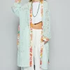 Floral Trim Lace Open Front Longline Cardigan – Pale Mint