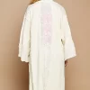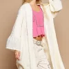 Flower Lace Trim Open Front Longline Cardigan – Cream