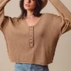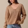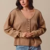 Frayed Cut Mineral Washed Deep V Neck Waffle Top – Coffee
