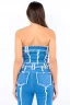 A frayed edge denim corset top features a pull-on closure, corset-style design for a slim fitting look, and frayed edge trims. This trendy piece combines the edginess of denim with the flattering silhouette of a corset top. The pull-on closure makes it easy to put on and take off, while the corset-style design accentuates the waist for a sleek and stylish fit. The frayed edge trims add a touch of rugged charm and casual appeal to the overall look. Perfect for pairing with high-waisted bottoms or layering under jackets or cardigans, the frayed edge denim corset top is a versatile and fashion-forward piece that can elevate any outfit with its unique blend of style elements.