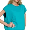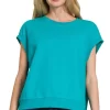 French Terry Round Neck Cap Sleeve T-Shirt – Lt Teal
