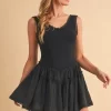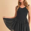 Frill Sleeveless Drop Waist Mini Dress – Black