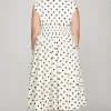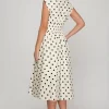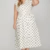 Front Zip Polka Dots Cap Sleeve Midi Dress – Off White