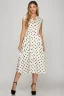 Front Zip Polka Dots Cap Sleeve Midi Dress – Off White