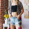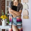 An animal print leopard and stripe open cardigan is a bold and eye-catching statement piece that adds a touch of edginess to any outfit. The combination of leopard and stripes creates a unique and fashion-forward look. This cardigan is perfect for adding a playful and trendy twist to your wardrobe, and can be styled with solid-colored basics for a balanced and stylish ensemble.