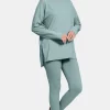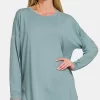 Full Size Brushed Microfiber Top and Leggings Lounge Set – Blue Grey