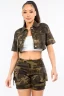 Full Size Camouflage Short Sleeve Cropped Jacket – Olive Camo