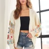 Full Size Contrast Crochet Open Front Long Sleeve Cardigan – Ivory