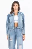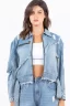 Full Size Distressed Frayed Edge Zip Up Denim Jacket Plus Size – Light Blue