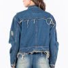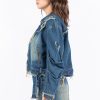 Full Size Distressed Frayed Edge Zip Up Denim Jacket Plus Size – Medium