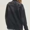 Full Size Distressed Long Sleeve Denim Jacket – Black