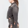 Full Size Distressed Star Stud Trim Denim Rider Jacket Plus Size – Vintage Wash