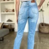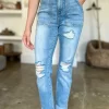 Full Size Distressed Straight Jeans With Patch Pockets – Medium