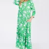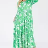 Full Size Floral Print Asymmetric Tiered Midi-Dress Plus Size – Green Floral
