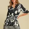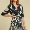 Full Size Floral Print Notched Tie Waist Mini Dress Plus Size – Black