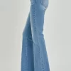 High rise button fly bootcut jeans offer a flattering silhouette that accentuates the waist while providing ample room for the legs. The button fly adds a vintage touch, making these jeans a stylish choice for various occasions. The bootcut design is versatile, allowing for easy pairing with both heels and flats. Made from comfortable denim, they ensure all-day wear without compromising on style. Whether dressed up with a chic blouse or kept casual with a simple tee, these jeans are a timeless wardrobe staple. Perfect for transitioning between seasons, they seamlessly blend comfort and fashion.