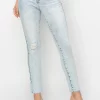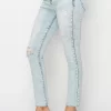 These high rise distressed skinny jeans feature a figure-flattering silhouette and on-trend distressed details. The high rise design adds a modern touch to the classic skinny fit. The distressed areas give these jeans a cool, laid-back vibe perfect for casual outfits. With a versatile style, they can be dressed up or down for various occasions. Made for comfort and style, these jeans are a wardrobe staple for a chic and effortless look. Whether paired with sneakers for a casual day out or heels for a night out, these jeans offer endless styling possibilities.