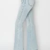 Full Size High Rise Front Patch Pocket Flare Jeans – Acid Light