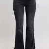 Full Size High Waist Flare W/ Mock Fray Tulip Hem Plus Size