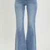 Full Size High Waist Raw Hem Flare Jeans – Medium